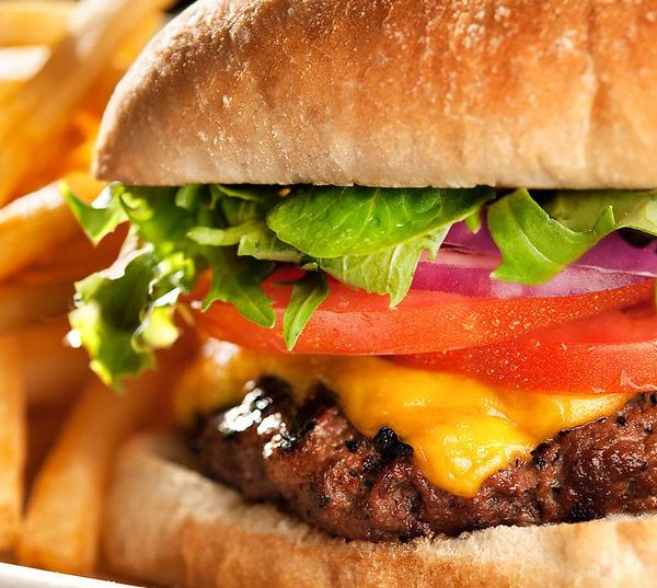 Ultimate beef burger with oven baked chips